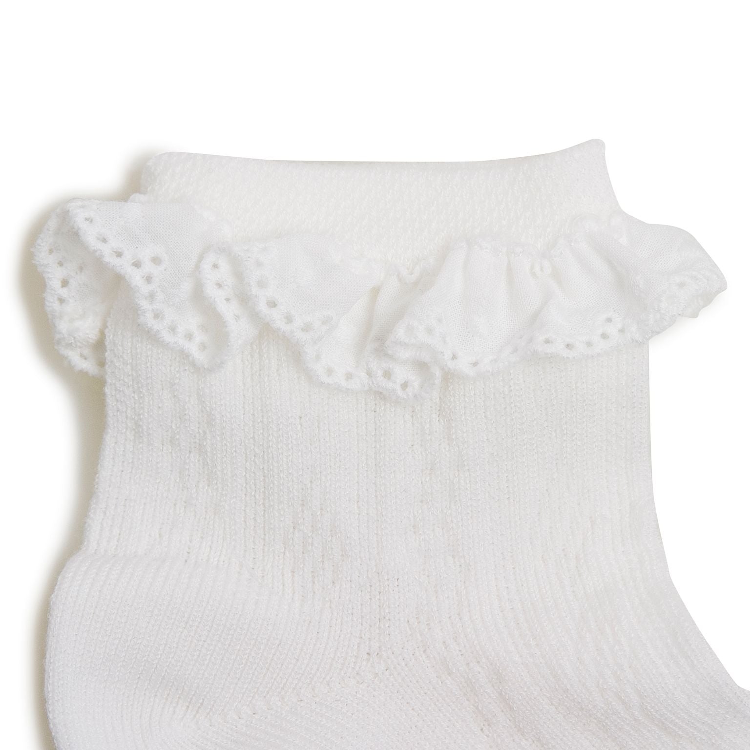 Soft pointelle high quality cotton ankle socks with broderie anglaise by Collegien.